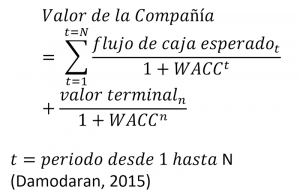 El flujo de caja descontado es el modelo de valoración de empresas más ampliamente aceptada por inversionistas, banqueros de inversión y académicos a nivel global. Se basa en la premisa según la cual el valor de un activo no se determina por la percepción subjetiva de un tercero sobre el valor actual, sino que se trata de una función de los flujos de caja futuros esperados para el mismo (Damodaran, 2015). Este modelo será el centro de nuestro estudio.
